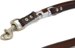Deze hoge kwaliteit lederen hondenriem is perfect voor wandelen met uw hond. De riem en het metalen koppelstuk zijn van goede kwaliteit en kunnen dus ook goed gebruikt worden voor krachtige (grote) honden.