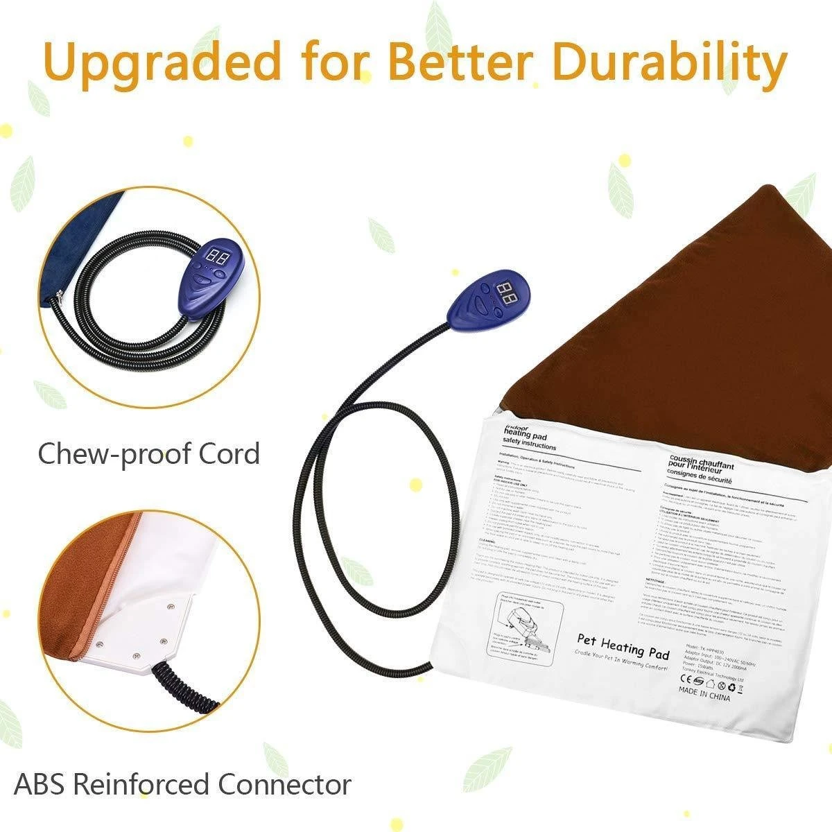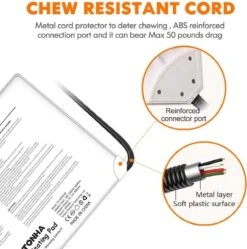De mat werkt op een veilige spanning van 12V. De bijbehorende adaptor wordt meegeleverd.